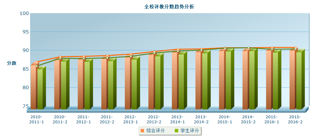 3、本学期教师授课质量,学生评价平均分为90.8分,优秀率(90~100分)为63.2%,学生评价80分以下课程占0.2%。